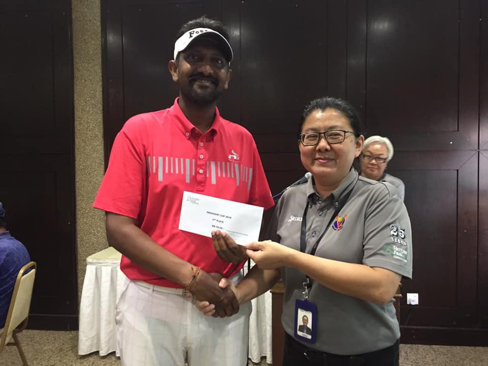 Mr Marcus Choong takes the President Cup trophy with an amazing net score of 67. The 18 handicapper played a gross score of 43, 44 to take the title leaving behind Mr Sasikumar with one stroke behind for the 2nd position. Mr Izu follows in 3rd place with 2 strokes behind the Champion. What a nail-biting Championship which was held on 7th July 2019.